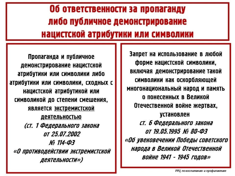 Ответственность за демонстрацию нацистской атрибутики здесь, здесь