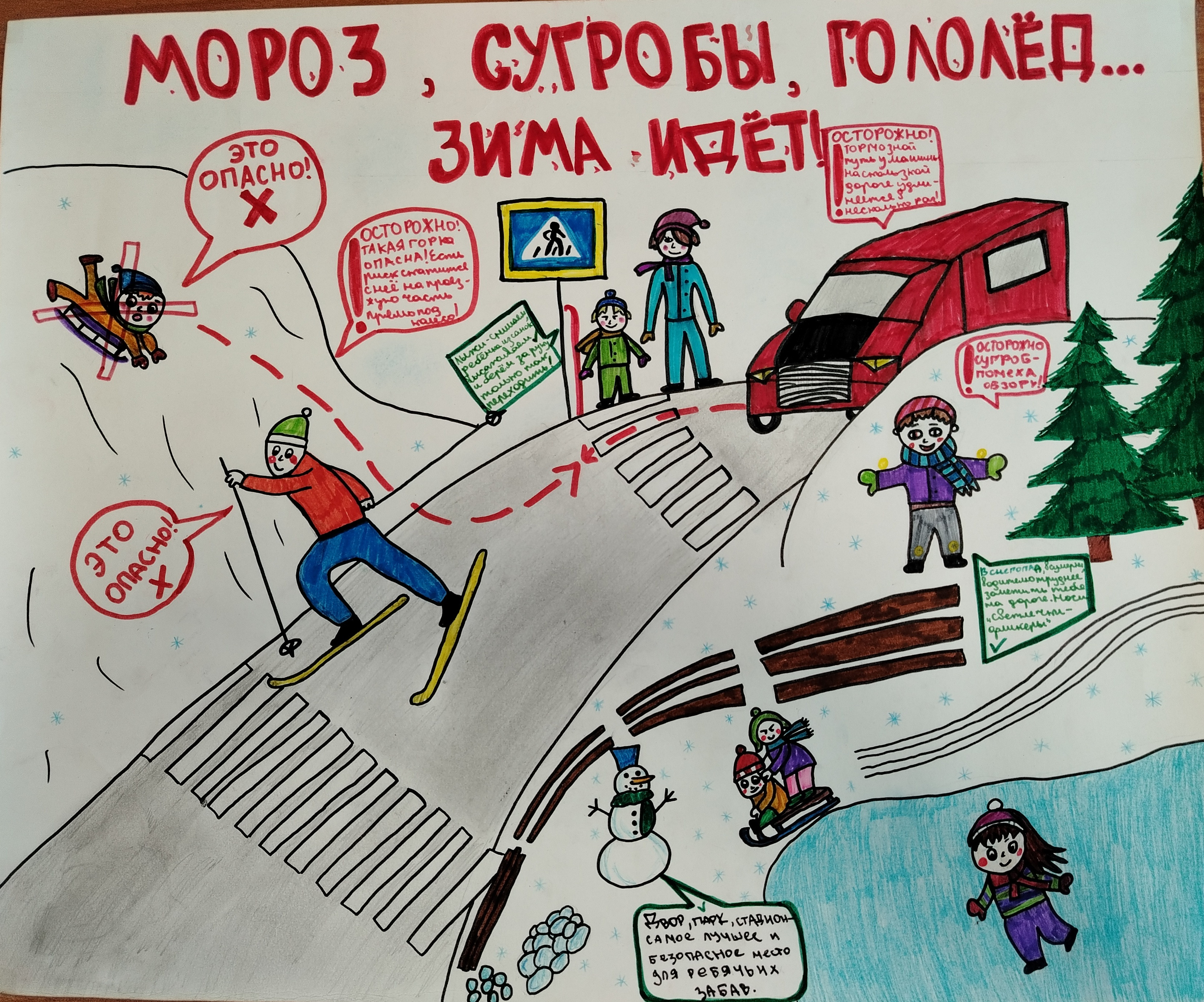 С воспитанниками ГПД проведена беседа, о правилах безопасного поведения в зимний период. Ребята раскрасили раскраски, а девчонки, старшеклассницы, нарисовали плакат на заданную тему.