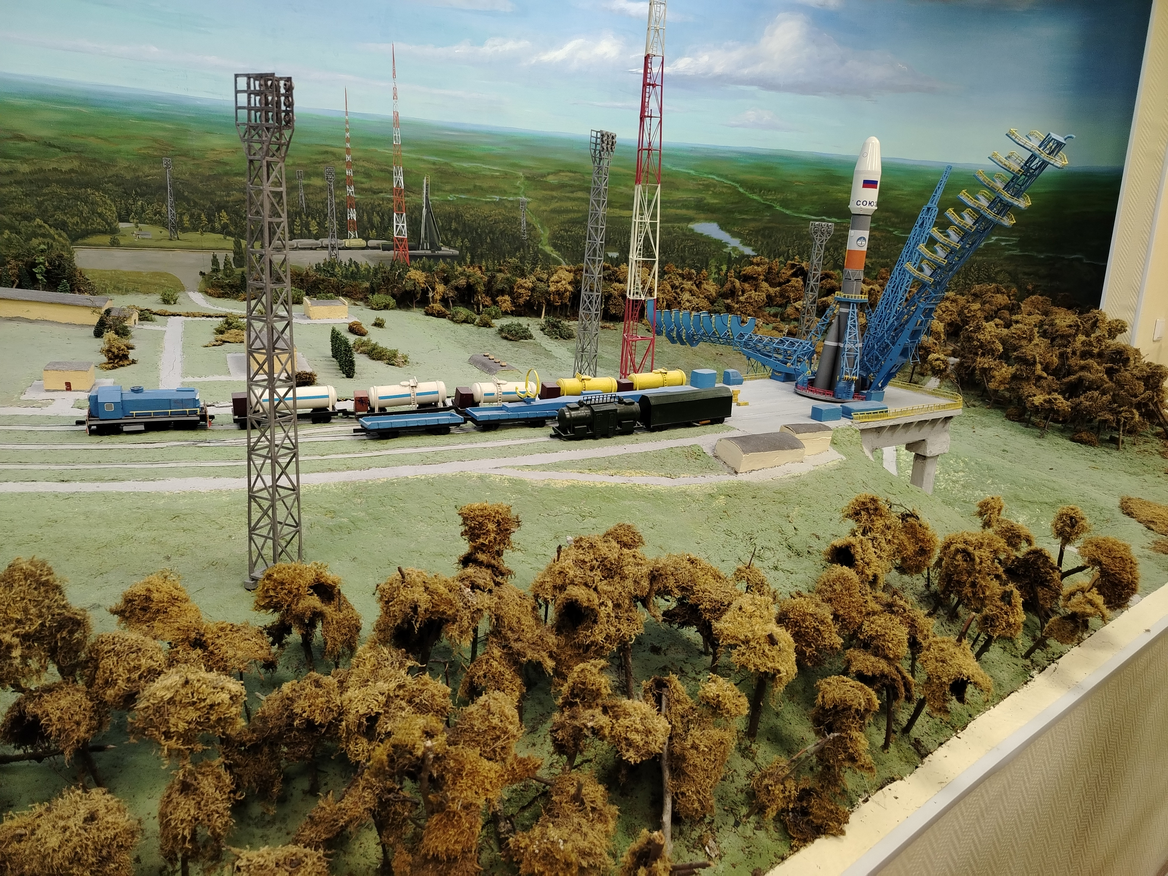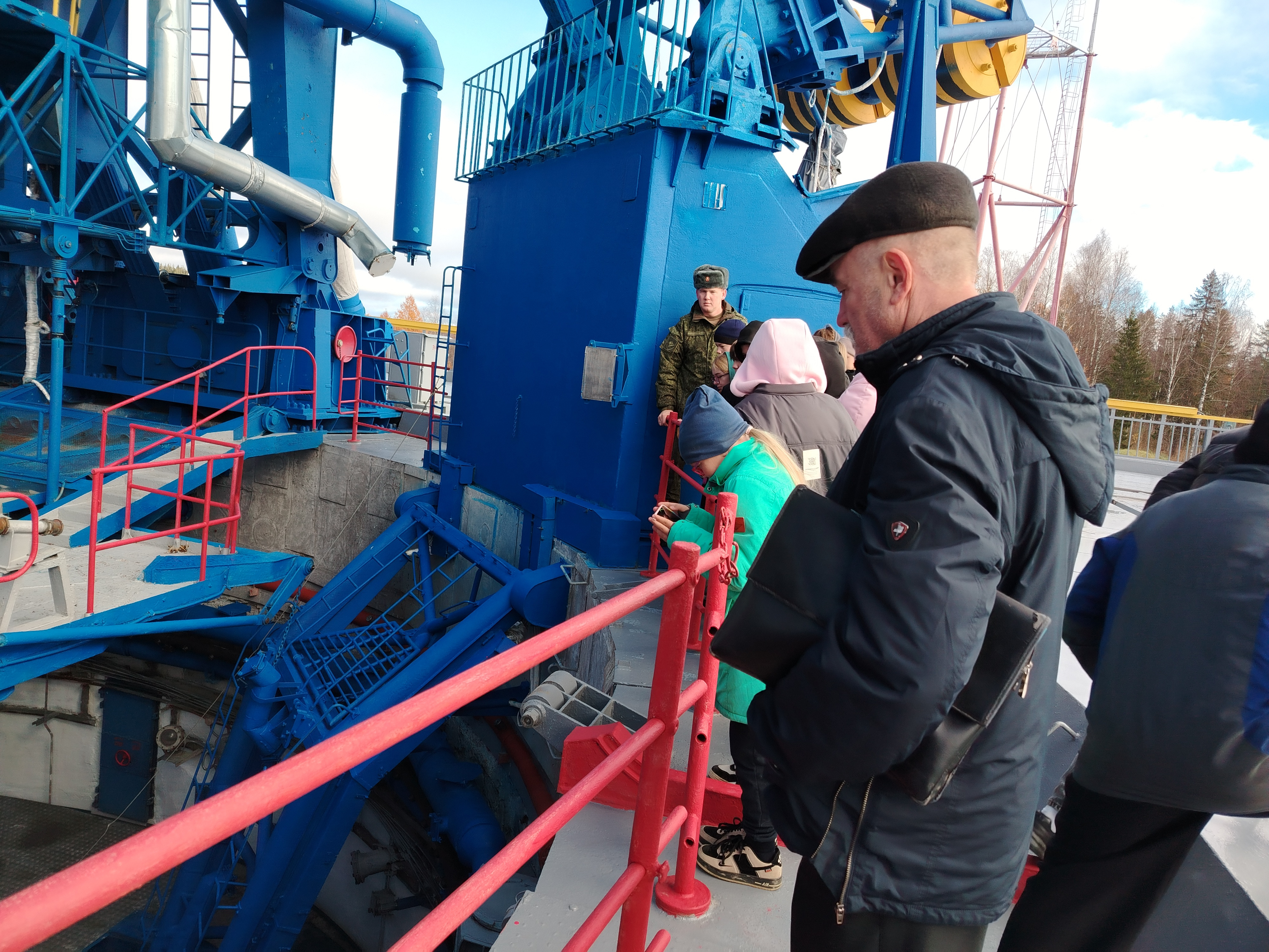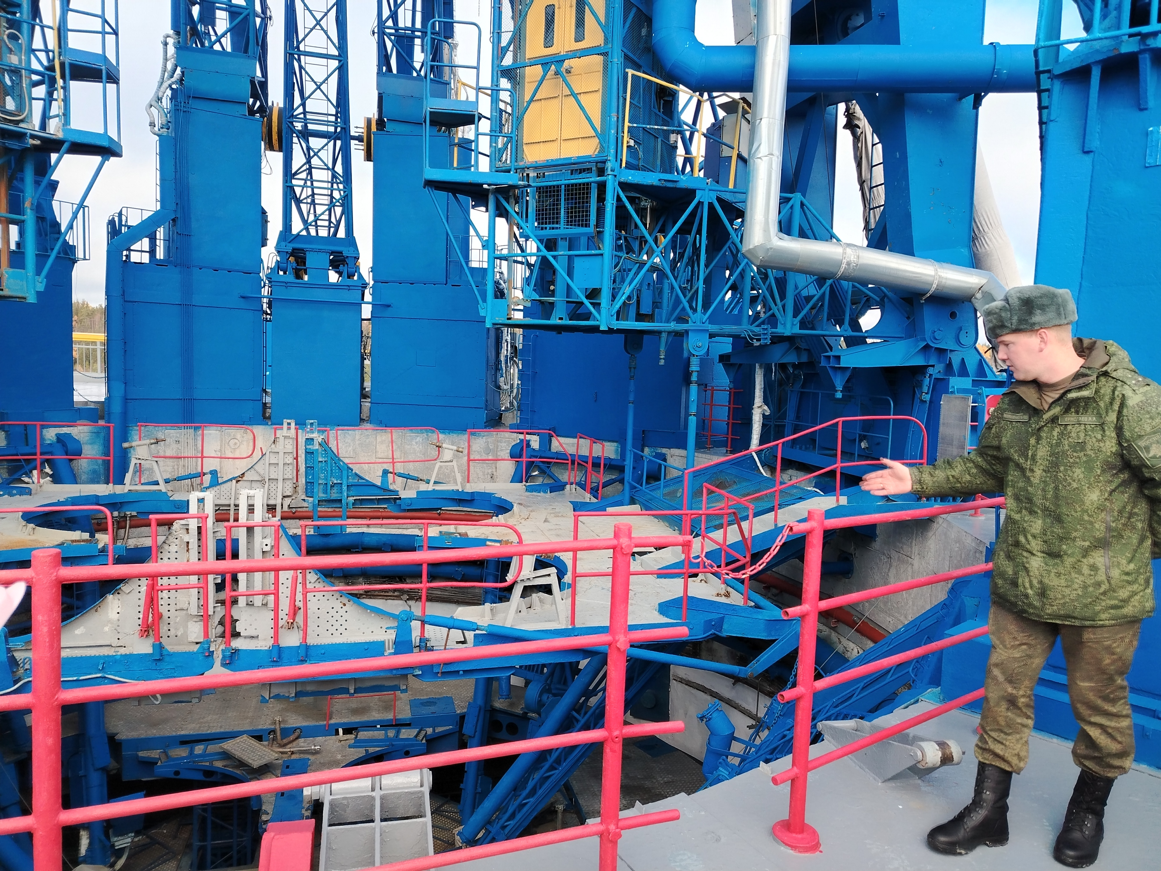 Посмотрели макет космодрома, узнали, что стартовых площадок на космодроме несколько, каждая рассчитана на запуск конкретного типа ракет или спутников. Одну из них, а именно «Союз» нам посчастливилось посетить (к сожалению, по независящим от нас причинам, на вторую площадку «Ангара» времени не осталось). Масштабность объекта впечатляет! Комплекс имеет высоту около 70 метров и такой же глубины подземную часть. Когда осознаёшь всю важность и значимость данных стратегических объектов, а также видишь, с каким патриотизмом об этом рассказывают сами военные, экскурсоводы дух захватывает!