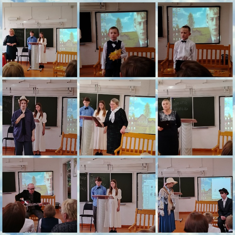 Элегантные ведущие Алена Подосенова и Вячеслав Овчинников познакомили участников с жизненным и творческим путём Есенина, а наши замечательные чтецы выступали с есенинскими стихами, вкладывая всю любовь к поэту! Самые маленькие участники гостиной: Роймуев Кирилл и Красков Илья поразили всех своими образами и отличным чтением стихотворений "Берёза" и "Я покинул родимый дом", участникам литературной гостиной был представлен фрагмент из поэмы "Анна Снегина" нашими десятиклассниками: Юлией Косухиной и Дмитрием Емельяновым, искромётно звучали стихи в исполнении Виктории Худяковой (финальное стихотворение было авторским!), поддержали школьников и взрослые: учитель русского языка и литературы Костина Галина Ивановна и библиотекарь Долгозерской библиотеки Костина Надежда Михайловна!