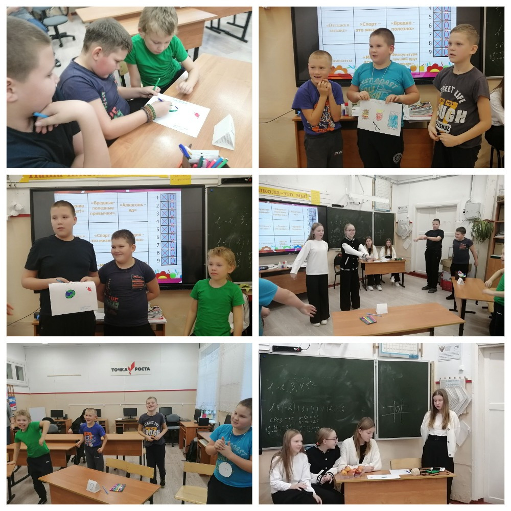 По картинке определяли вид спорта, отличали полезные продукты от вредных, всей командой придумали и нарисовали плакат, который призывает нас всех к ЗОЖ, а из рассыпанных строчек стихотворения пытались собрать в правильном порядке: